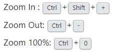 컨트롤키 + 쉬프트키 + (백스페이스키 왼쪽) + 또는 - 키 (0은 원래 크기로)