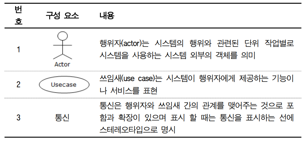 누가 어떤 용도로 시스템을 사용하는지에 대해 행위자(actor)와 사용 사례(use case) 의 관계로 표현할 수 있다.