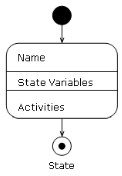 statechart diagram은 시스템의 변화 상태를 표현한다. 즉, statechart diagram은 하 나의 객체에 집중하여 그 객체의 시작에서부터 종료까지의 상태변화를 표시하는 다이어그램이다. statechart diagram은 시스템의 모든 클래스에 대해 그릴 필요는 없으며 의미 있는 행동 양식을 보여주는 주요 클래스들에 대해서 그린다. 시작점(initial state)과 종료점(final state)이 있다. 이들은 각각 객체의 시작과 종료 의 시점을 표시해 준다. 상태 다이어그램은 위에서부터 이름, 상태변수, 활동을 나 타내는 세 영역으로 나눌 수 있다. activities는 사건(event)과 동작(action)으로 이루 어진다.