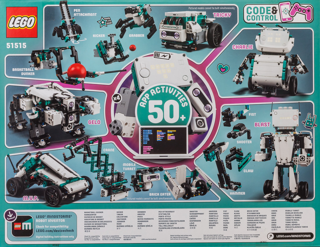On the back of the box are representative robots that can be assembled. You can also make more than 50 activity items, which is an attractive Lego product for children and the general public. You can feel the efforts of the developers. 상자의 뒷면에는 조립이 가능한 대표적인 로봇들이 표시되어 있습니다. 또한 50개 이상의 활동 아이템을 만들 수 있는데 그만큼 어린이들이나 일반인들에게 매력적인 레고 제품입니다. 개발자들의 노력을 느낄수가 있습니다.