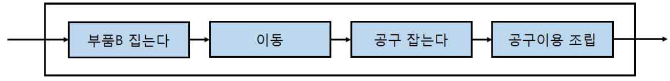 [그림 1-3]은 용접 공정에서의 작업 순서를 보여주고 있다. 용접 공정에서는 여러 개의 부품을 차례대로 용접을 하게 되는데, 각 용접 작업은 용접해야 할 부품을 집고, 공구를 들고, 용접을 하고, 부품을 내려놓는 순서로 진행됨을 보여주고 있다.