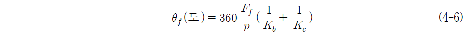 조임 회전각과 조임력의 관계가 선형인 경우, 탄성역 조임에서의 조임 회전각과 조임 력의 관계는 식(4-6)과 같다.