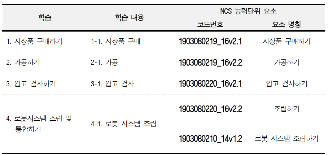 NCS 세분류 에는 "로봇기구개발" 되어 있고 포함 내용 들 중 관련성 잇는 항목은 그 내용은 아래와 같습니다.
