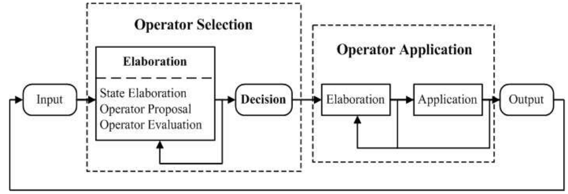 연산자 선택에는 상태 정교화(state elaboration), 연산자 제안(operator proposal), 연산자 평가(operator evaluation)의 세부 단계가 있고, 연산자 적용에는 연산자 정교화 (operator elaboration)와 연산자 적용(operator application)의 세부 단계가 있다.