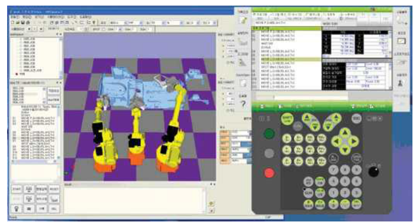 현재 개발되고 있고 상업적으로 제공되는 오프라인 프로그래밍 과정은 검증과 프로그램 작성을 위한 삼차원 모델을 만들기 위해서 그래픽 시뮬레이션을 사용한다. 로봇 셀은 로봇, 공작 기계, 컨베이어, 그리고 다른 기계로 구성될 수 있다. 시뮬레이션은 이런셀 구성 요소들이 모니터상에 표시되고, 동영상을 통해 로봇이 작업 사이클을 수행할수 있도록 해 준다. 시뮬레이션 과정을 이용하여 프로그램이 개발된 뒤에 셀에서 사용 하는 특정 로봇에 맞는 문자 언어로 전환된다. 이것은 NC 파트 프로그래밍의 후처리 과정과 유사한 단계이다.