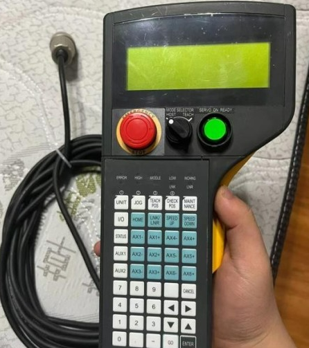 [그림 1]과 [그림 2]는 티치 펜던트의 예를 나타내고 있다. 토글 스위치나 버튼을 이용하여 프로그래머는 로봇 팔이 원하는 위치로 구동되도록 순서대로 조작한다. 그리고 그 위치를 메모리에 기록한다. 차후의 재연 시 로봇은 자체의 동력으로 위치를 연속적으로 통과하면서 움직인다.